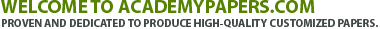 ACADEMYPapers provides papers that has a primary role of serving only as a guide for the students in doing their personal assignments, research papers and projects or for assistance purposes only. ACADEMYPapers.com will not be responsible to whichever purpose the customer will use the product/s submitted to them. The essays should be used with proper reference.